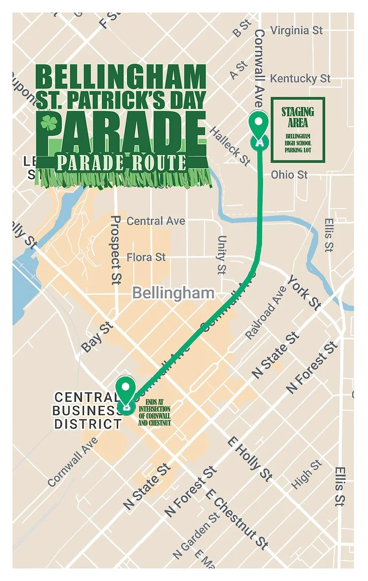 The parade starts at noon at Bellingham High School and continues on Cornwall past Uisce, ending at the corner of Cornwall and Chestnut.